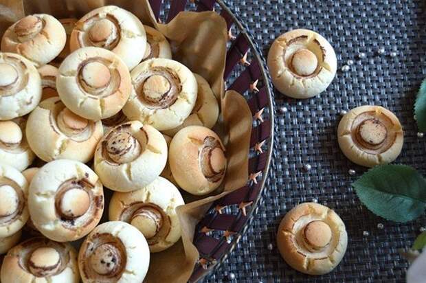 Оригинальный рецепт приготовления ароматного печенья с добавлением крахмала. Грибочки получаются рассыпчатыми и вкусными.