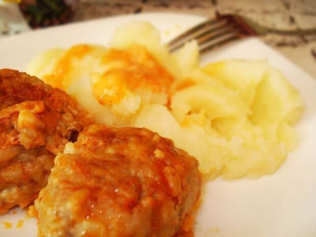 Тефтели с подливкой можно подавать с любым гарниром, например, картофельным пюре.